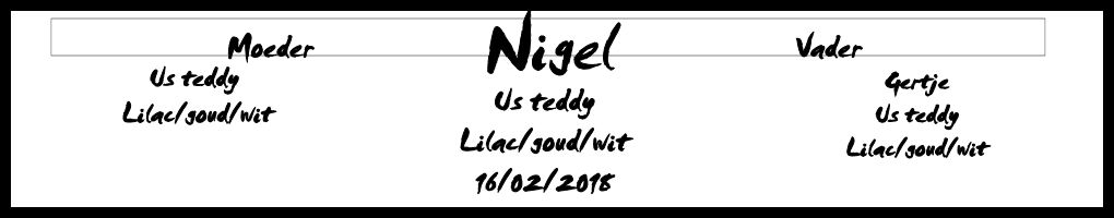 Onze lilac-goud/saffraan-wit dieren worden kleurzuiver gefokt. Daarmee willen we zeggen dat er absoluut geen choco of slate in de lijnen voorkomt.